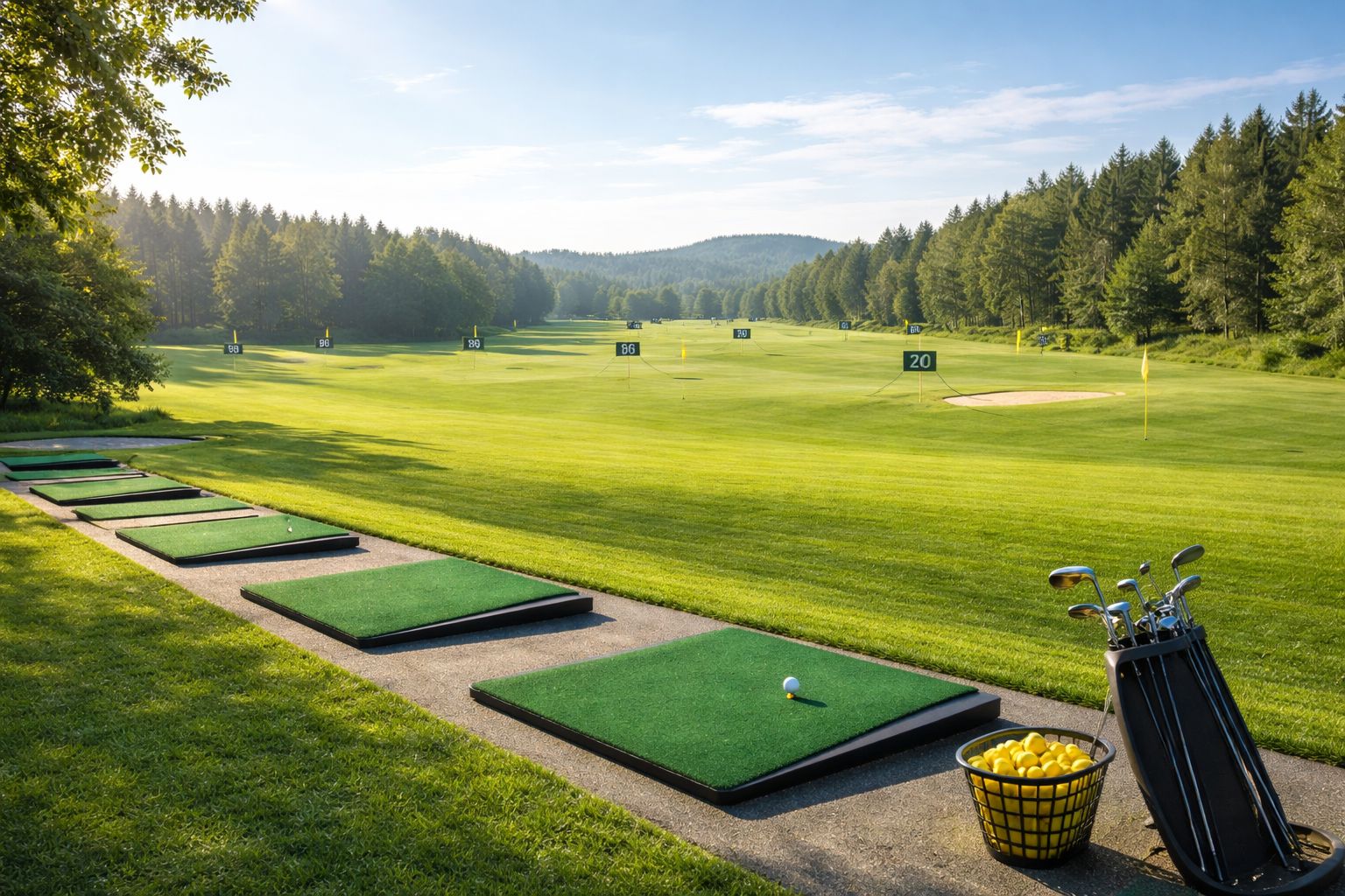 Drivingrangen er klargjort og ligger til rette for gode treningsøkter – enten du ønsker å finpusse teknikken eller bare komme i gang igjen i rolige omgivelser.
